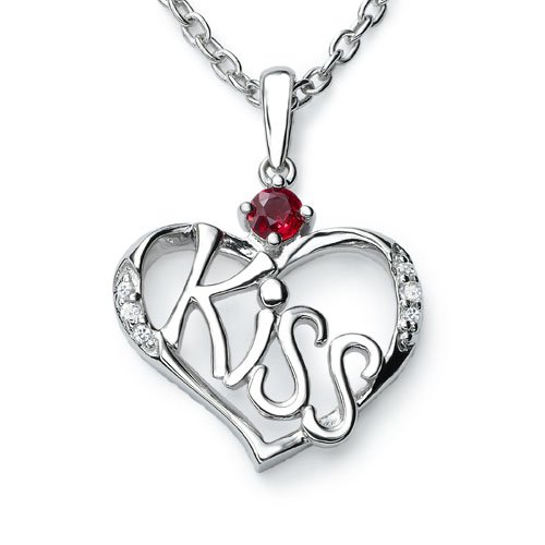 Available at AmazonCheap "Ruby and Diamond "Kiss" Heart Necklace in Sterling Silver includes 18" Sterling Silver Cable Chain with lobster claw clasp." Discount Review Shop