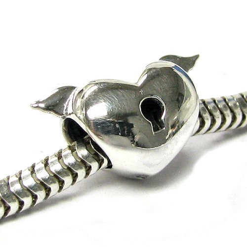 Valentines Gift Sterling Silver Love Heart Lock w/ Wing Bead For Pandora Troll European Charm Bracelets Features