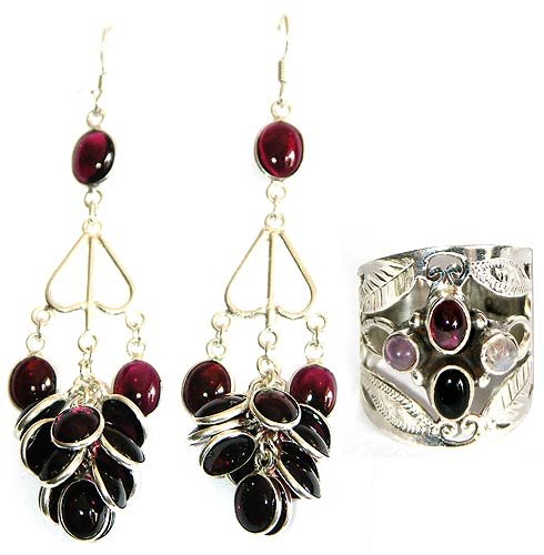 Valentines Gifts Silver Garnet Earrings and Ring