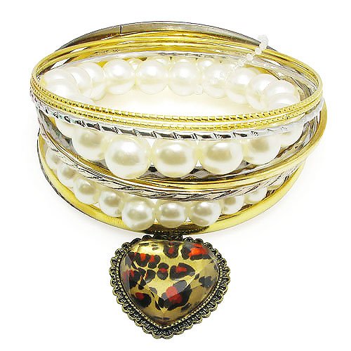 - Retro Style Classic Leopard Love Heart Embellished Pearls Multi-layer Bracelet
